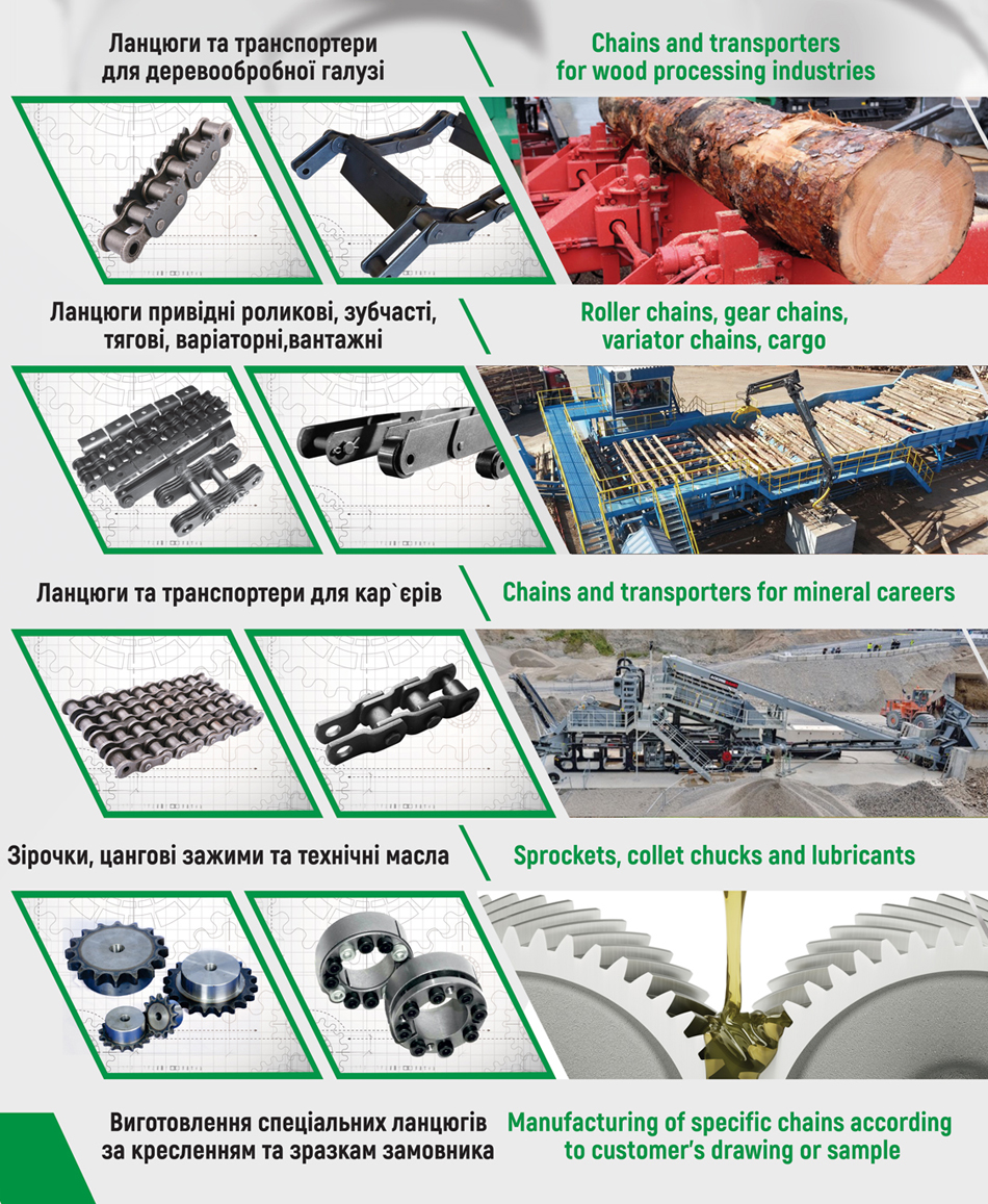 - Ланцюги для деревообробної промисловості